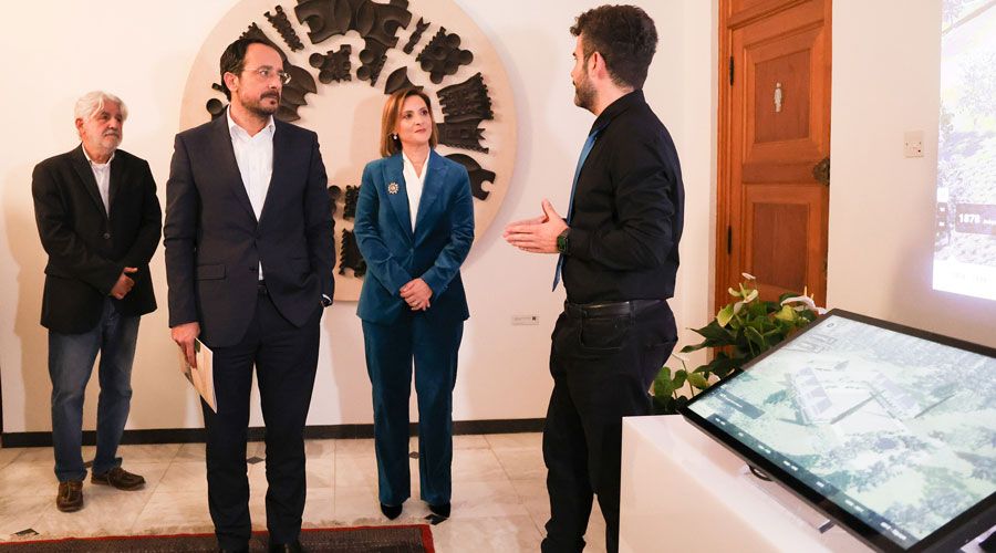 Μια διαδραστική μηχανή του χρόνου που παρουσιάζει την ιστορία του Προεδρικού Μεγάρου από τότε που πρωτοκτίστηκε ως αρμοστείο και μετέπειτα ως κυβερνείο μέχρι και σήμερα, εκατόν περίπου έργα τέχνης των σημαντικότερων Κύπριων δημιουργών και σπάνιες κυπριακές αρχαιότητες από τα βάθη των αιώνων, συνθέτουν την τριλογία του έργου «Κύπρος: ο κόσμος, ο τόπος, ο λόγος, η ύλη», που παρουσιάστηκε το βράδυ της Δευτέρας, ενώπιον πλήθος κόσμου, παρουσία του Προέδρου της Δημοκρατίας, Νίκου Χριστοδουλίδη.