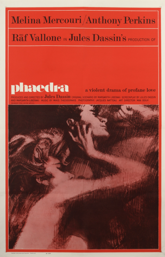 Ομορφη αφίσα έχει και «Το παιδί και το δελφίνι» («Boy on a dolphin»), η πρώτη αμερικανική παραγωγή που γυρίστηκε στη χώρα μας το 1957, με την απαστράπτουσα Σοφία Λόρεν να υποδύεται τη Φαίδρα, μια νεαρή σφουγγαρού από την Υδρα, η οποία ανακαλύπτει τυχαία ένα αρχαίο άγαλμα στον βυθό του νησιού. Ανάλογα εντυπωσιακή είναι και η ξανθιά Τζέιν Μάνσφιλντ, η οποία υποδύθηκε την Ελένη Κόστα, μια μεγάλη Ελληνίδα ντίβα στο «Συνέβη στην Αθήνα» του 1962. Φυσικά, από τις αναφορές της έκθεσης δεν θα μπορούσαν να λείπουν ο Ζυλ Ντασσέν και η Μελίνα Μερκούρη. Το «Ποτέ την Κυριακή» και η «Φαίδρα», ταινίες με οσκαρικές υποψηφιότητες αλλά και νίκες, ενίσχυσαν ακόμη περισσότερο τον ελληνικό κινηματογραφικό μύθο στην άλλη πλευρά του Ατλαντικού.