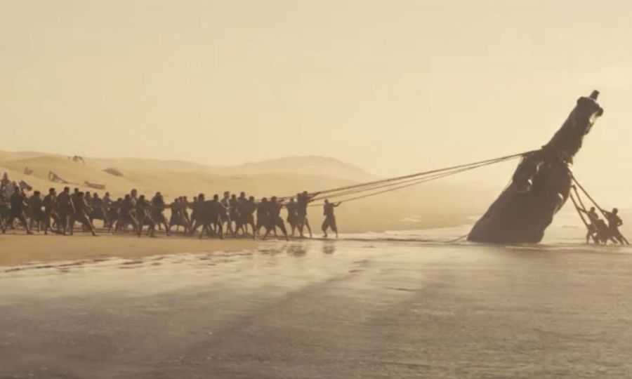 Κάτι τέτοιο συνέβη και χθες, όταν «ανέβηκε» στο Διαδίκτυο το πρώτο επίσημο τρέιλερ της «Οδύσσειας», το οποίο μπορεί να μην αποκάλυψε πολλά, όμως ήταν αρκετό ώστε να μας ανοίξει η όρεξη για το κυρίως… μενού. «Επειτα από χρόνια πολέμου, κανείς δεν μπορούσε να μπει ανάμεσα στους άνδρες μου και στην πατρίδα. Ούτε καν εγώ», ακούμε τον Οδυσσέα (Ματ Ντέιμον) να λέει, σε ένα γενικώς έντονα δραματοποιημένο κλιπ. Εχει προηγηθεί το πλάνο μιας αμμώδους έκτασης –παραλίας;– γεμάτης από μνήματα στρατιωτών. Ο Δούρειος Ιππος ανασύρεται με σχοινιά μέσα από τη θάλασσα, ενώ στο εσωτερικό του οι «Αργείοι» αγωνιούν.