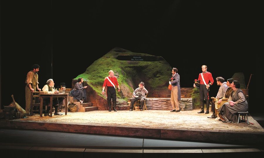 Το δεύτερο σημείο έχει να κάνει με την απεικόνιση της τοπικότητας στο έργο, που παρατίθεται γλωσσικά μέσα από τη χρήση της κυπριακής ελληνικής, σε μια προσπάθεια να δημιουργήσει μια γέφυρα μεταξύ της ιρλανδικής και κυπριακής αγροτικής πραγματικότητας. Η χρήση της γλώσσας από την ομάδα των νεαρών, με τις αναφορές τους σε γεωργικές εργασίες, ενώ από την άλλη η αναφορά των λογίων χαρακτήρων στο κρυφό σχολείο (που μπορεί να είναι χρήσιμο ως γνώριμη αναφορά αλλά αποτελεί μια πολύ φορτωμένη εθνοκεντρική μυθοπλασία), κτίζουν μια κυπριακότητα πολύ μπερδεμένη. Πατά σε μια βουκολική αγροτική πραγματικότητα από τη μια, αλλά συντηρεί τον εθνικό μύθο που την καταξιώνει, από την άλλη. Ακόμα η τοποθέτησή της στην Ιρλανδία είναι σχεδόν ξένο σώμα. Σκηνοθετικά το στοιχείο που εμπόδισε τη σχέση αυτή να εξελιχθεί ήταν η τοποθέτηση της δράσης σε ένα στημένο «θεατρικό» σκηνικό, ένα αφαιρετικό σκηνικό με ένα χώρο για τη θεατρική δράση μπροστά και κέντρο, και με σκόρπια ενδιαφέροντα ρεαλιστικά αντικείμενα που πέφτουν όμως σε ένα (κυριολεκτικά) κενό χώρο. Παρά τα ταιριαστά κοστούμια, ο σκηνικός χώρος ήταν ουδέτερος σε σημείο μη αναγνώρισης, που δεν επέτρεπε το στοιχείο της συνάντησης των δύο κόσμων να πραγματοποιηθεί.