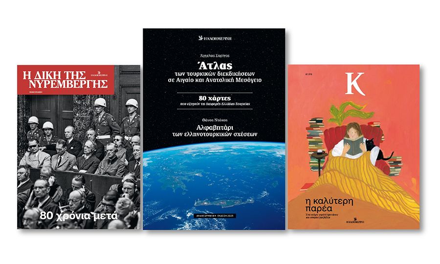 Ακούμε εδώ και χρόνια για τα χωρικά μας ύδατα, την υφαλοκρηπίδα και την ΑΟΖ. Ξέρουμε τι ακριβώς είναι όλα αυτά και ποια είναι τα εθνικά διακυβεύματα σε σχέση με τις διεκδικήσεις των Τούρκων; Η ειδική έκδοση «Άτλας των τουρκικών διεκδικήσεων σε Αιγαίο και Ανατολική Μεσόγειο», που προσφέρει η Καθημερινή αυτή την Κυριακή 4 Ιανουαρίου, λύνει πολλές απορίες. Μαζί, η ειδική έκδοση «Η Δίκη της Νυρεμβέργης» που ρίχνει φως στη δίκη των πρωτοπαλίκαρων του Χίτλερ και το περιοδικό Κ που είναι αφιερωμένο στα βιβλία.