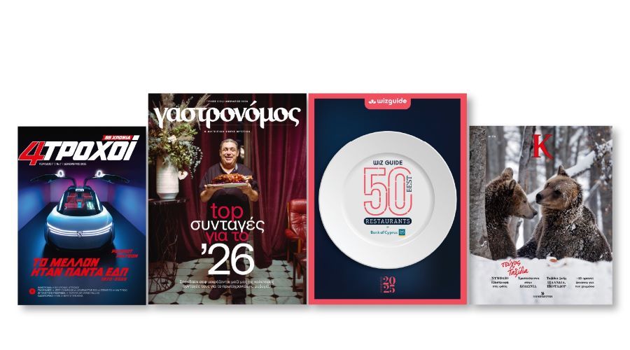 Λίγο πριν αποχαιρετήσουμε την χρονιά, η Καθημερινή μας προσφέρει μια πληθώρα αναγνωσμάτων για κάθε γούστο. Ο πρωτοχρονιάτικος Γαστρονόμος βάζει τα καλά του και ετοιμάζει ένα ρεβεγιόν-εμπειρία παρέα με 8 σπουδαίους Έλληνες σεφ. Μαζί του, η ειδική έκδοση Wiz 50 Best Restaurants 2025 που μας παρουσιάζει τα 50 καλύτερα εστιατόρια της Κύπρου που ξεχώρισαν για τη θαυμάσια κουζίνα τους και την μοναδική εμπειρία που προσφέρουν. Ακόμη, οι 4Τροχοί, που συμπληρώνουν πενήντα πέντε χρόνια κυκλοφορίας και το γιορτάζουν δεόντως με ένα συλλεκτικό-επετειακό τεύχος και το περιοδικό Κ, που μας ταξιδεύει στα τέσσερα σημεία του ορίζοντα, σε ένα οδοιπορικό που ξυπνάει τον ταξιδιώτη μέσα μας.